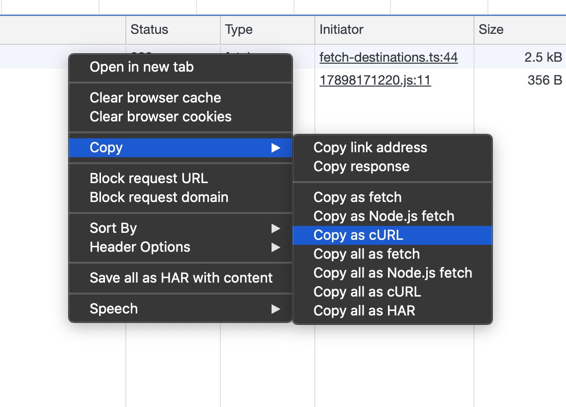 Trying to debug a network request? Right-clicking the request in the Network tab will allow you to copy the request in a range of pre-formatted requests.